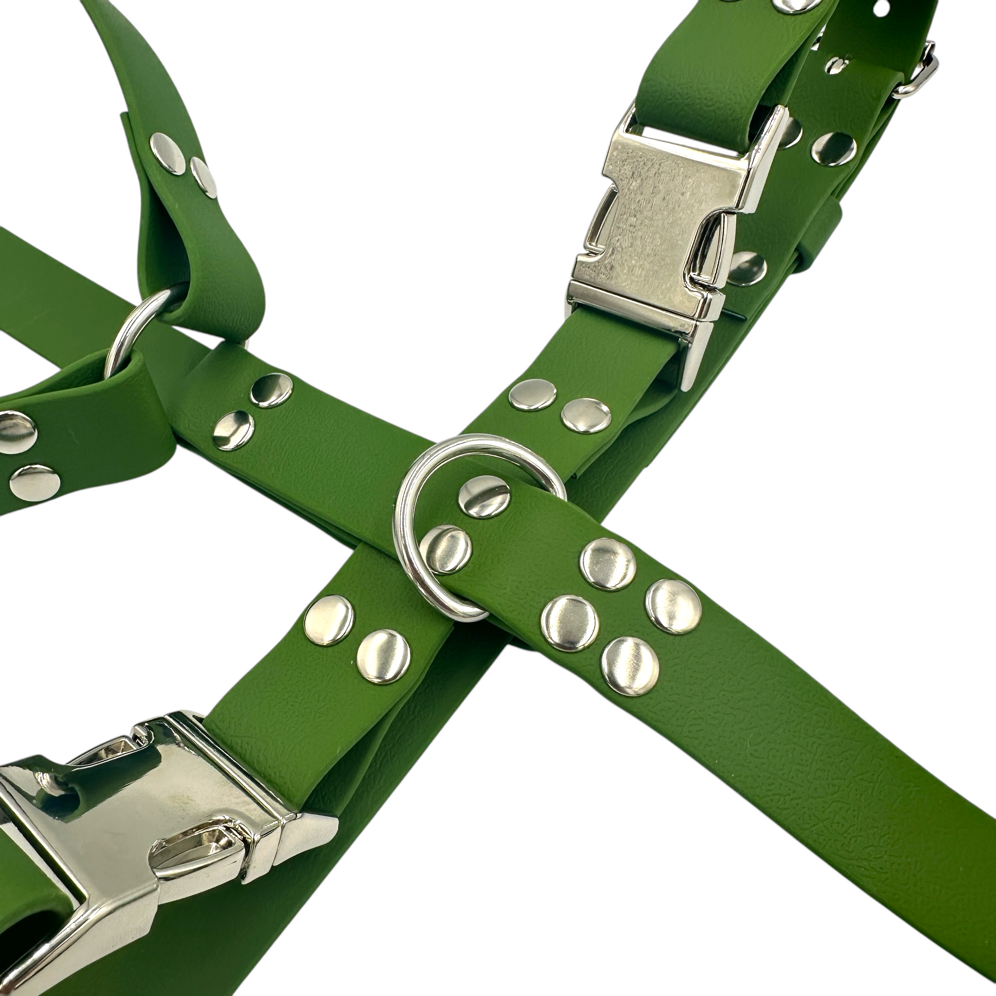- Our dog gear is made using strength tested materials. For this particular harness, we use webbing that has a minimum of 250KG breaking load. The hardware has a minimum of 180KG breaking load.
